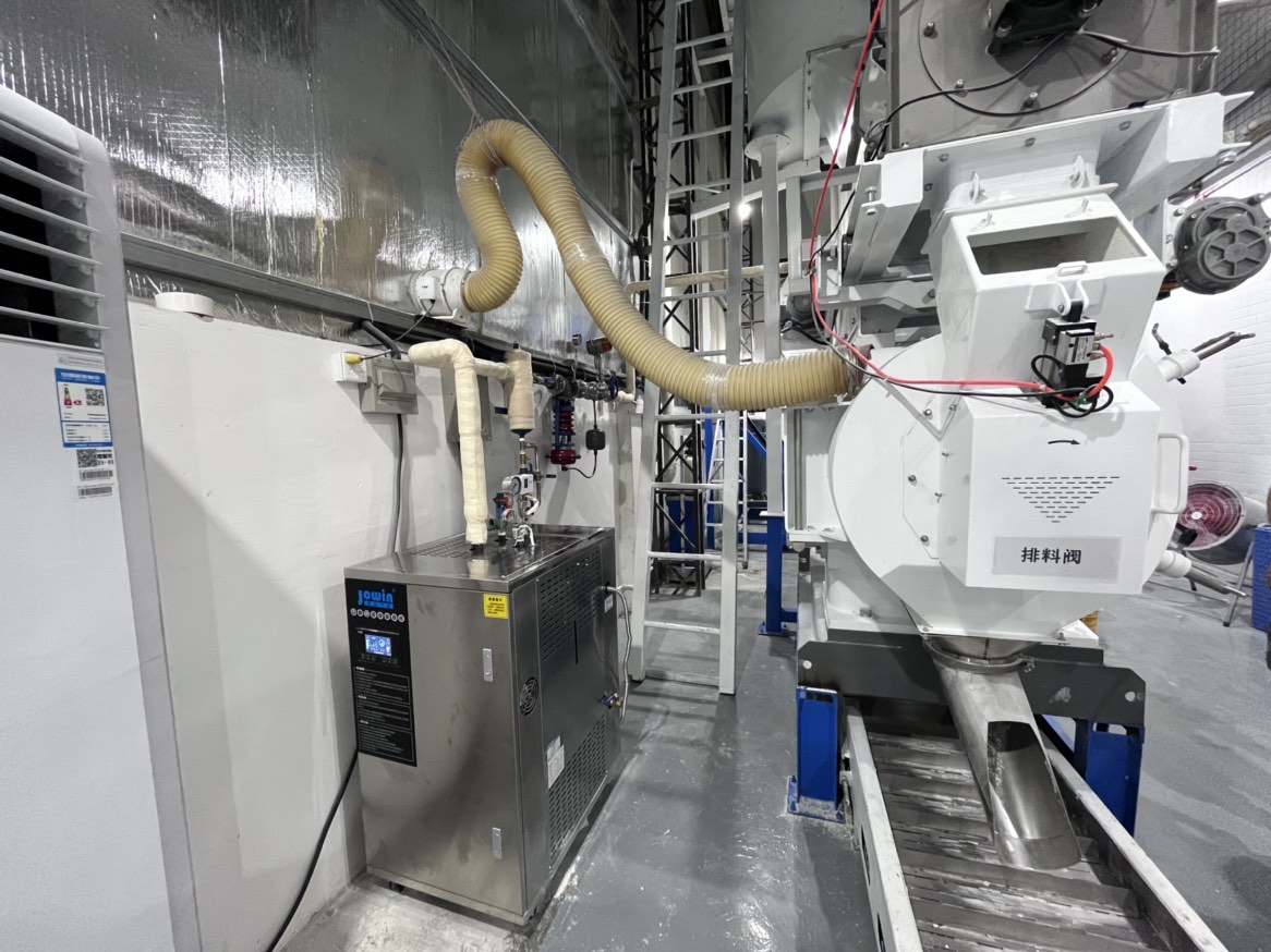 采用卓益立式電蒸汽發生器為貓砂殺菌。