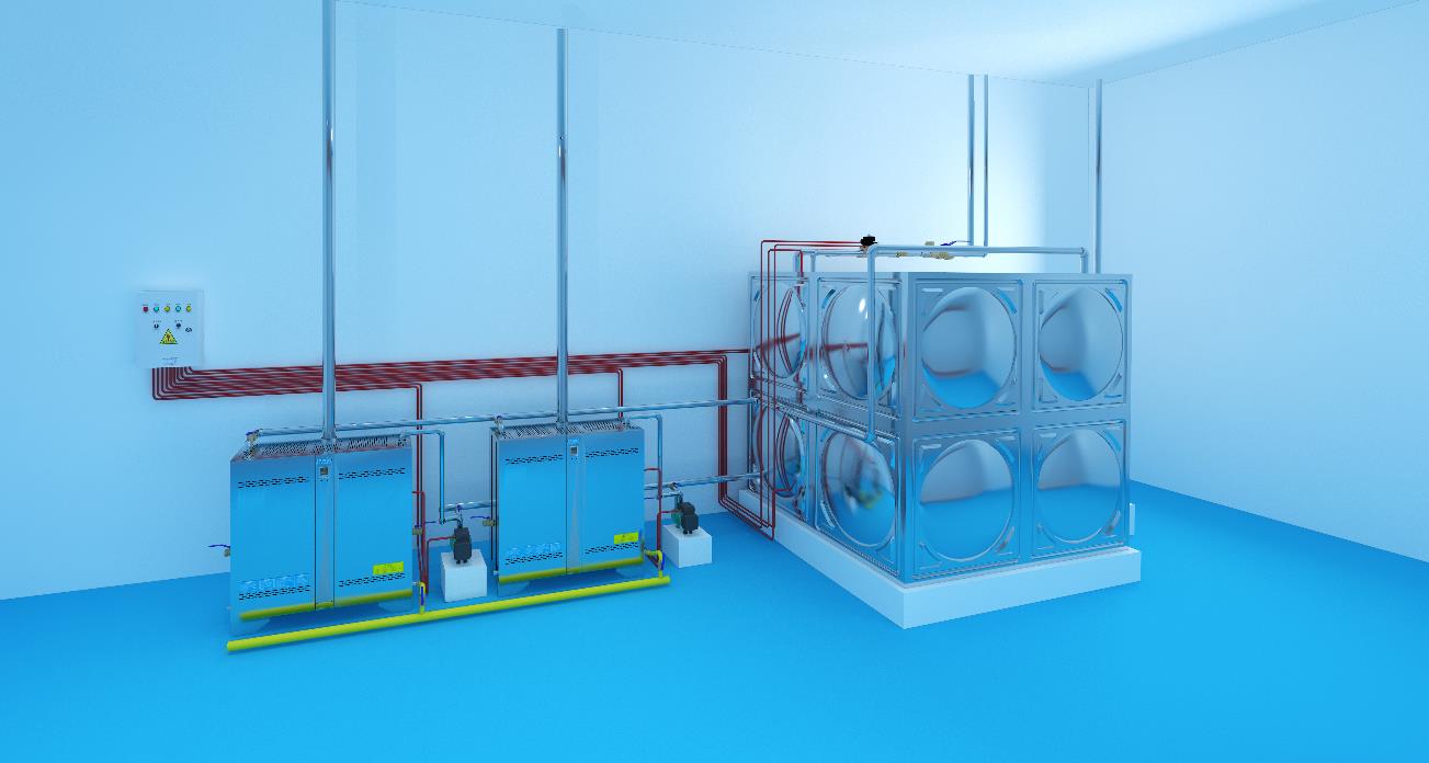 中央熱水方案采用卓益循環熱水機為水箱提供高溫熱水。