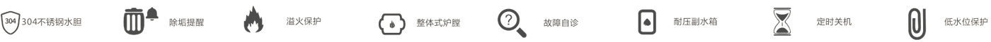 超大顯示屏,多重保護(hù),除垢提醒,溢火保護(hù),整體式爐膛,故障自診,耐壓副水箱,定時(shí)關(guān)機(jī),低水位保護(hù),304不銹鋼水膽,應(yīng)用范圍:餐飲食堂,食品加工,洗碗消毒,洗浴水療等。